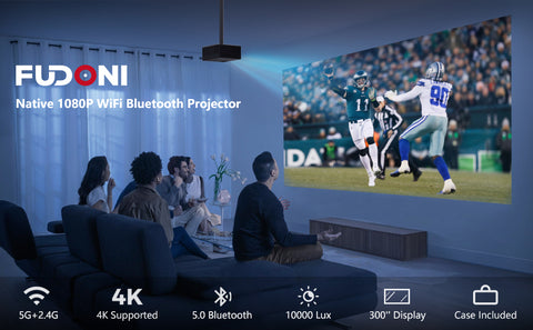 - 【STABLE 5G + 2.4G WiFi CONNECTION & 5.0 BLUETOOTH】FUDONI projector with wifi and Bluetooth supports Dual-Band WiFi connection, ultra-fast 5G WiFi offers you a more stable connection and lag-free online streaming experience for video streaming and gaming online. With 5.0 Bluetooth, this projector with wifi Bluetooth allows you to easily connect your ideal headphones, speakers, or other audio equipment.