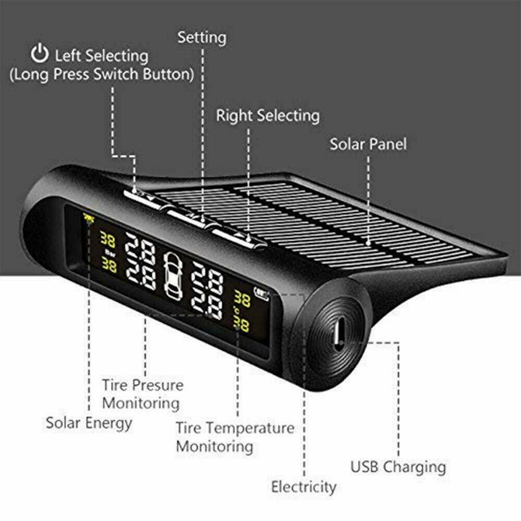 Know the real time air pressure and temperature for 4 tires on the screen. Gives you early warning of air leaks and other abnormal tire situations so corrective action can be taken and tire life can be extended. When the air pressure or temperature of any tire goes outside the predetermined range,both the monitor display and an audible alarm warn you.You’re also warned when the battery of a tire sensor is low.